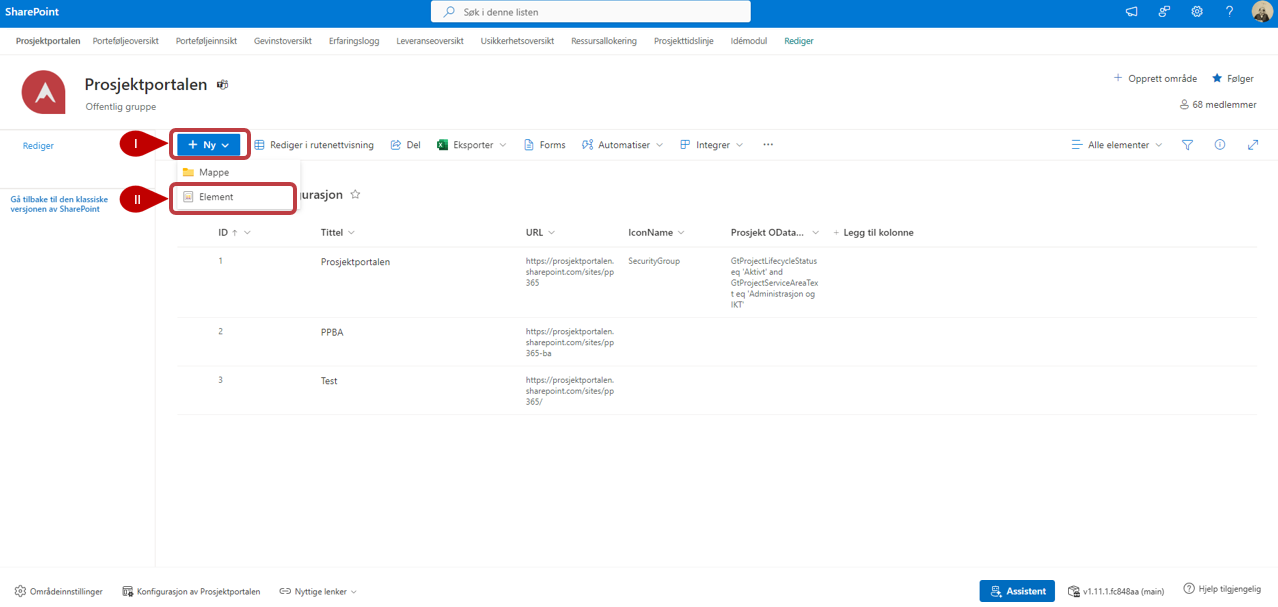 - Prosjektfase: Har ser du hvilken fase prosjektene er i.