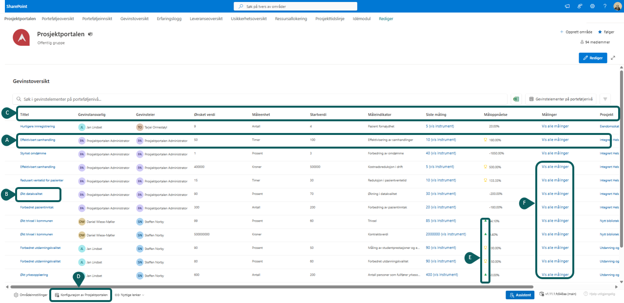 D) Konfigurasjon av Prosjektportalen finner du lengst ned på siden