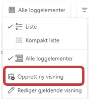 -knappen kan du filtrerere basert på tilgjengelige felter.