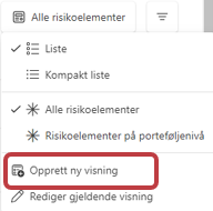 Her kan du velge mellom eksisterende visninger, editere visning og Oprette ny visning