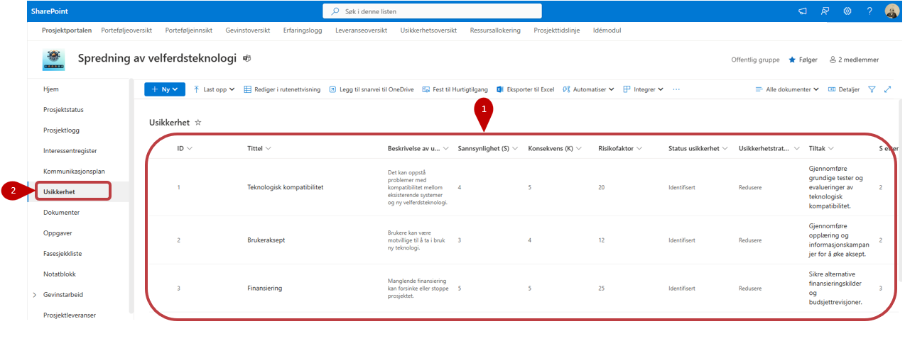 Usikkerhetslista lar prosjektdeltagere loggføre alle usikkerhetselementer som har oppstått, eller som har risiko for å oppstå, i løpet av et prosjekt.