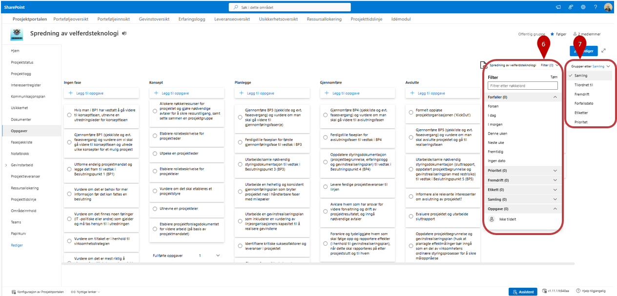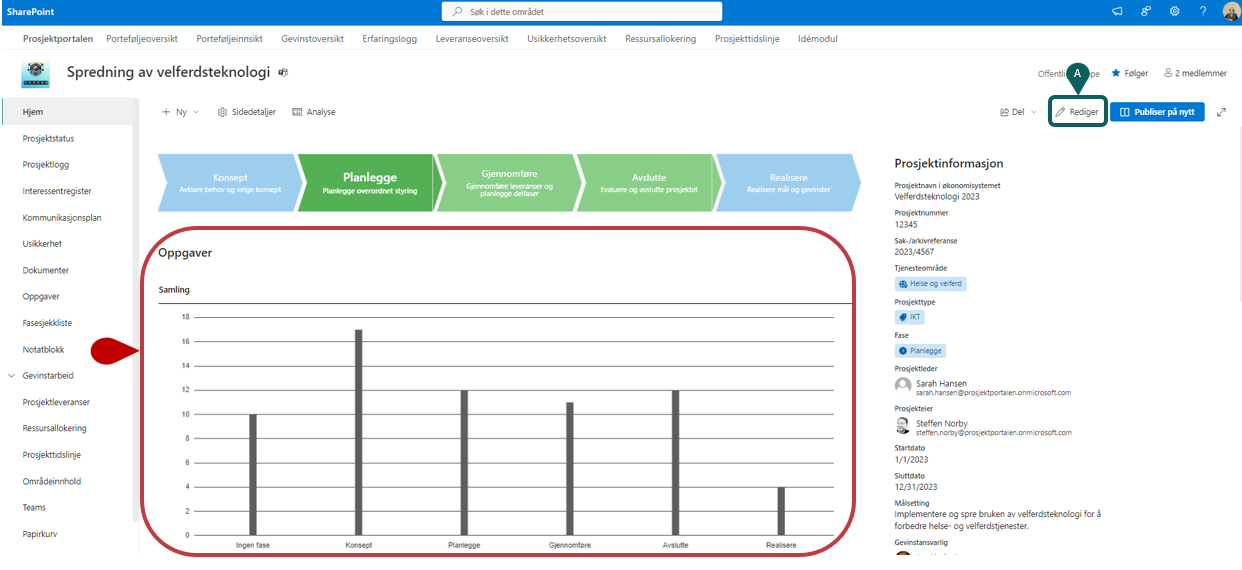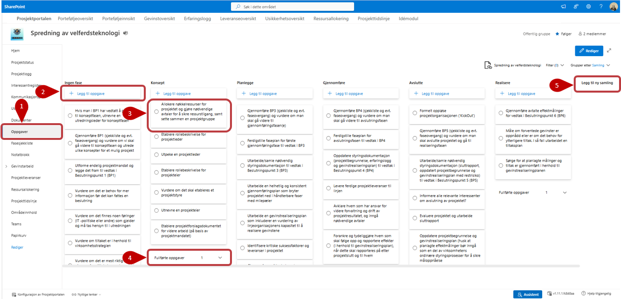 Prosjektportalen 365 benytter Microsoft Planner til oppgavestyring.