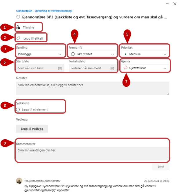 - Prioritet - Du kan sette opp prioritet på oppgaven